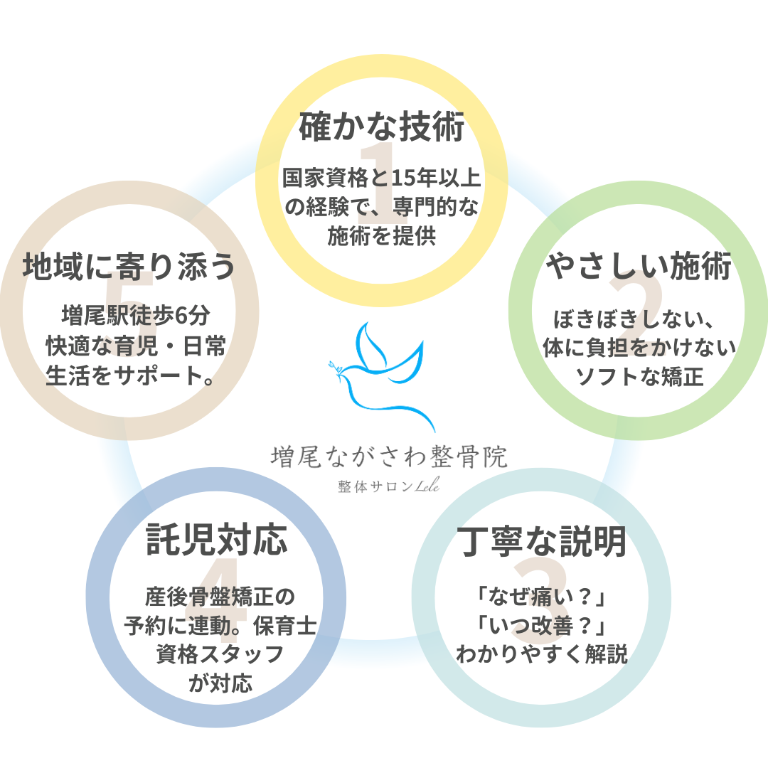 産後の骨盤ケアを中心に、抱っこ・授乳・寝不足でたまりやすい首・肩や腰の張りに配慮。骨盤=土台から全身をやさしく整え、毎日の育児を軽やかに。保育士対応の託児サポートあり。※施術は医療行為ではありません。