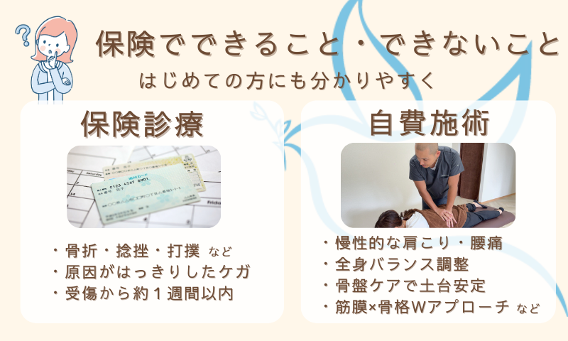 ※症状によっては保険が適用されず、自費施術となる場合があります。
